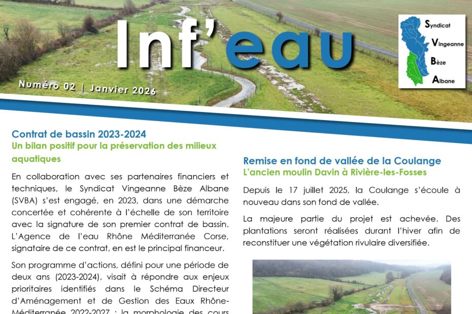 Pour suivre l’actualité du syndicat et l’avancement des actions inscrites au contrat de bassin, découvrez dès à présent notre toute dernière lettre d’information.